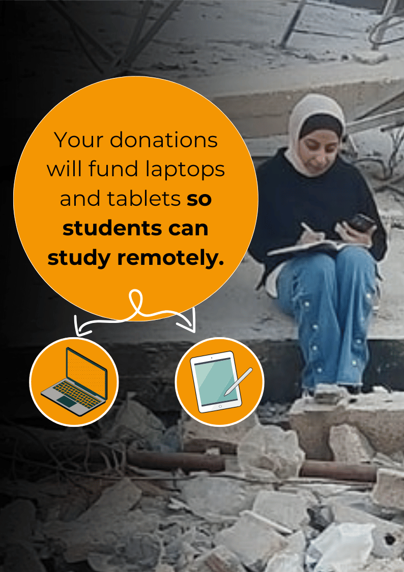 With every school and university in Gaza damaged or destroyed, your donation will help fund laptops and tablets so students can study remotely.