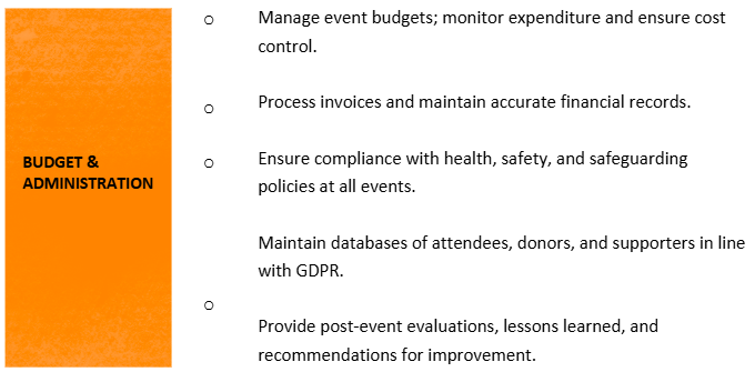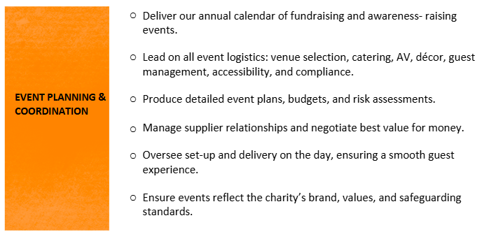 - Proven experience in planning and delivering events within a charity or community