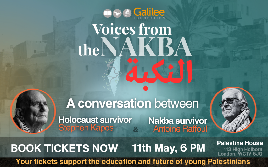 We begin “Voices From The Nakba” on 11th May with a crucial and hopeful conversation between Nakba survivor Antoine Raffoul and Holocaust survivor Stephen Kapos, showing us that even through the deepest pain, dialogue can light a path to justice.