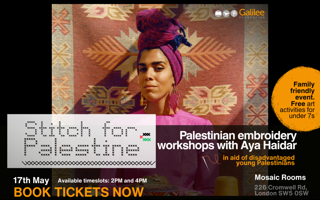 17th May: “Stitch For Palestine” Palestinian embroidery workshops with Aya Haidar